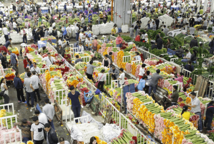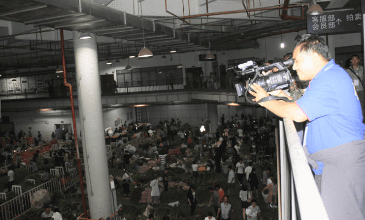 记者俯拍斗南花卉交易市场对手交易盛况